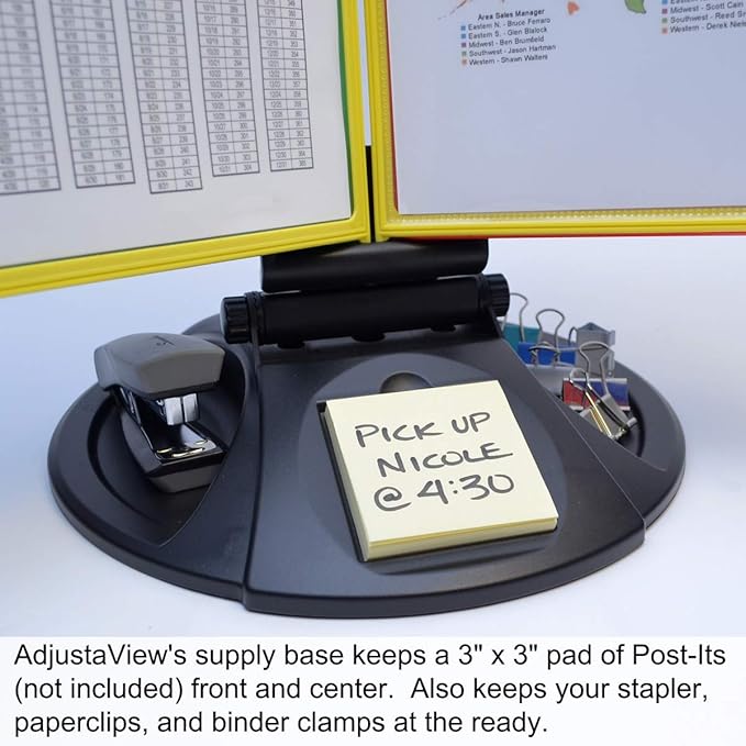 - STURDY, FUNCTIONAL, STORAGE BASE – Round 12 inch base provides excellent stability, and scratch-resistant bottom protects desk or shelf surfaces. Compartments on the side of the base store pens, paperclips, and more. Recessed front compartment is the perfect size for holding Post-Its.